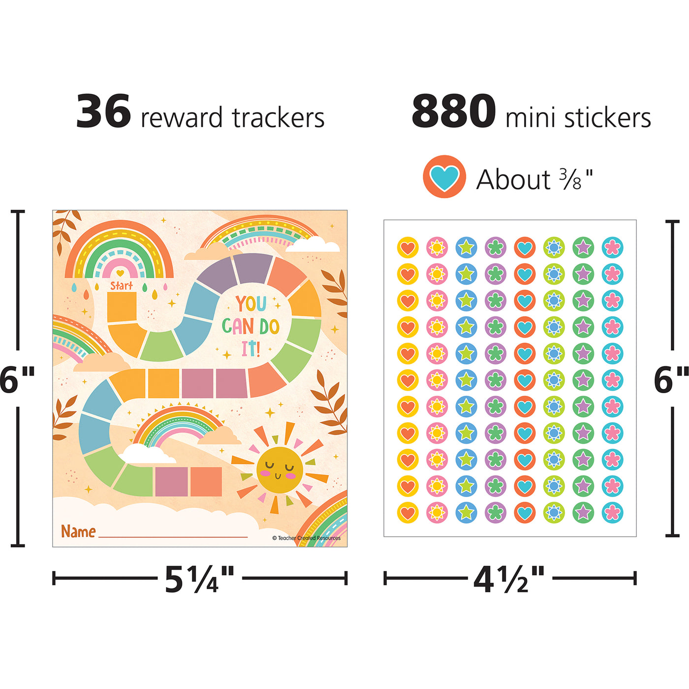 MPN: 005003UPC: 194629156412Motivate students and celebrate their progress with these engaging reward trackers. Each reward tracker measures 5-1/4" x 6", while the mini stickers are approximately 3/8" in diameter, perfectly sized for marking accomplishments. The stickers are both acid-free and lignin-free, ensuring a safe and long-lasting additi...
