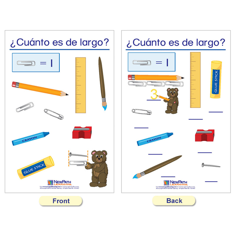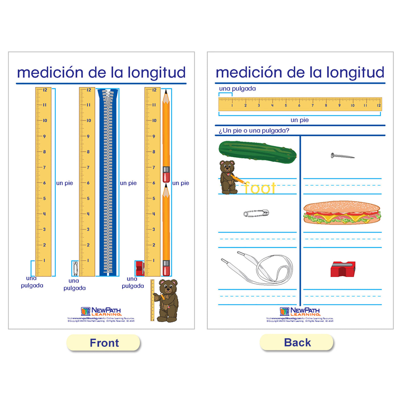 i : The Spanish edition of the Measurement Bulletin Board Chart Set combines visually stimulating images, labeled graphics, easy-to-read text, glossary terms and hands-on "write-on/wipe-off" activities to complement a variety of student learning styles
