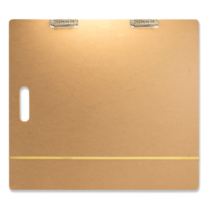 MPN: 006398UPC: 042491830995Designed to use in the studio, classroom, field, or home. Dual heavy-duty latch clips to hold paper or sketch pad in place while drawing. Convenient cut-out handle for easy carrying. Oversized rubber band securely holds artworks or documents in place. Durable, high-quality hardboard creates a smooth drawing surface. M...